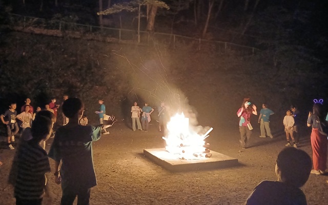 そして、日が暮れてから始まったのが「キャンプファイヤー」です。